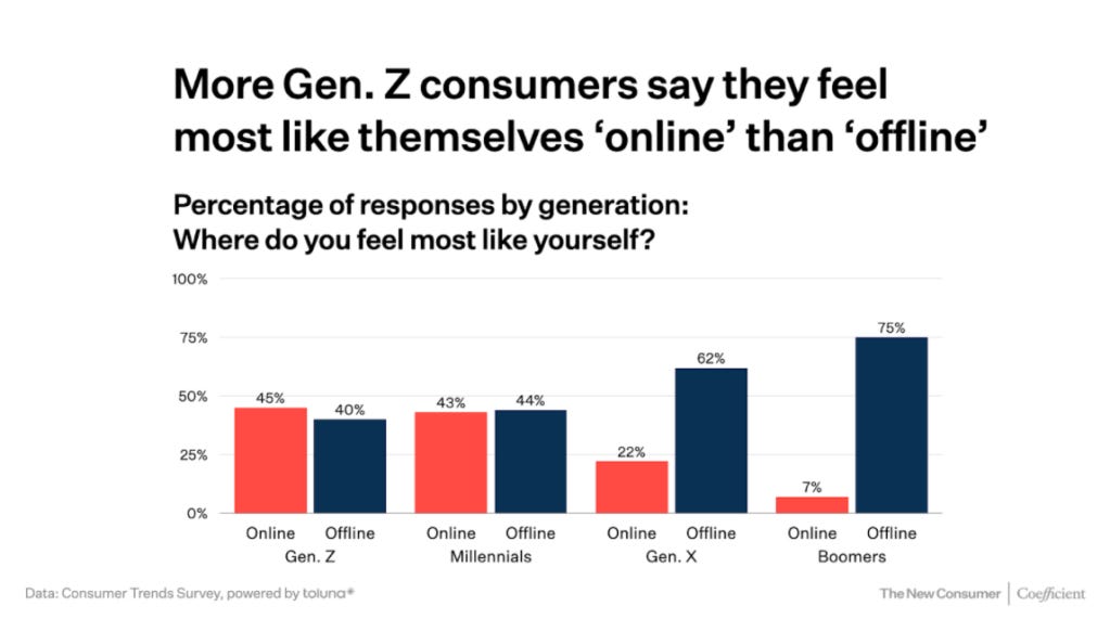 The metaverse begs the question, where do you feel most like yourself? Where do you feel like you can speak your authentic voice? For kids, it’s not at the dinner table with their parents, it’s in the vibrant halls of TikTok and Snapchat. These Millennial and Gen Z cohorts have pride of their online personas. They are proud of their posts, they are proud of their curations, they are proud of their avatars - and that’s OK. Every generation has their outlet. The baby boomers had their dance halls and boogie nights. The Gen X had their clubs and disco bars. Millennials had a bit of a hybrid with festivals and the arrival of social media and now Gen Z likely will find its sweetspot inside of a digital arena. Let’s not debate this and label it GOOD or BAD…it just IS.