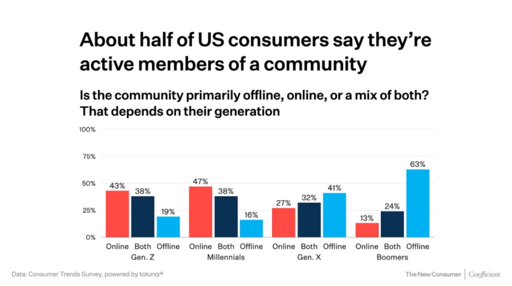 Gen Z’s and Millenials are now 40% of the population and they are speaking, LOUDLY. They are speaking with their thumbs and fingers though, not their mouths. As a proud millennial myself I understand what’s happening. Our instagram perception to our followers is more important than how we actually feel. Our Youtube curated feed is a better representation of our interests and desires than what we tell our friends. For me personally, I care more about how I’m perceived through my writing on substack and my posts on Linkedin from my followers than I do about a random assortment of people in a gigantic conference hall. I’m more intentional about crafting my online presence than I am about crafting my wardrobe.
